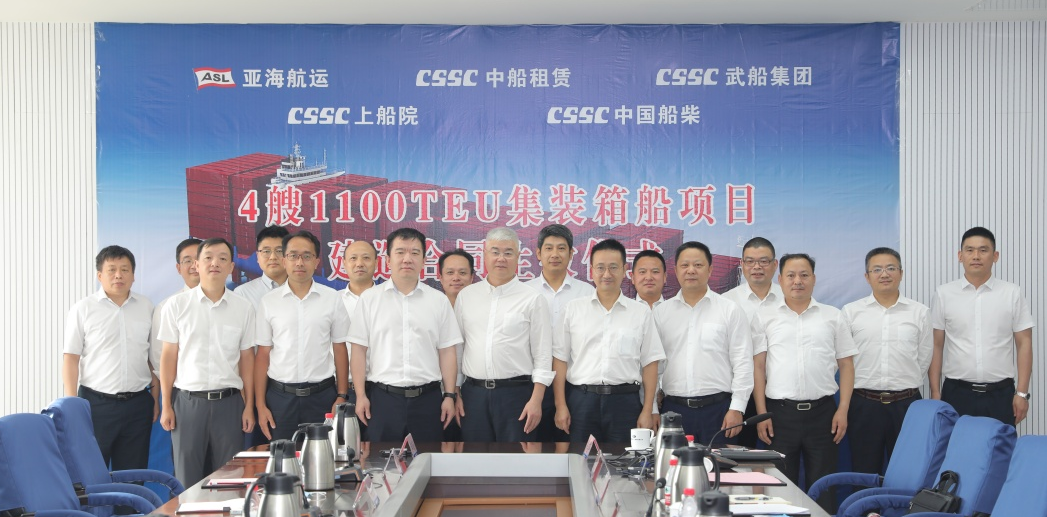 7月7日,中國船舶武船與CA SHIPPING(中船租賃和亞海航運成立的合資公司)簽署的4艘1100TEU集裝箱船項目合同生效儀式在武船總部舉行。這是公司繼此前交付的2艘700TEU集裝箱船后承接的又一支線集裝箱船訂單,為公司深耕支線集裝箱船市場,實現批量化、專業化建造奠定堅實基礎。