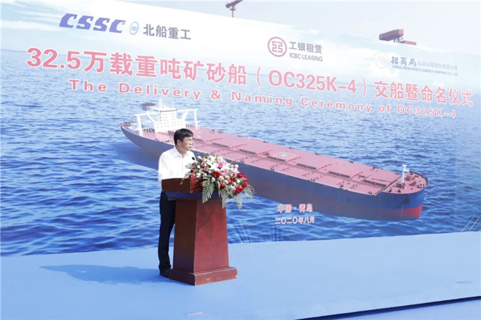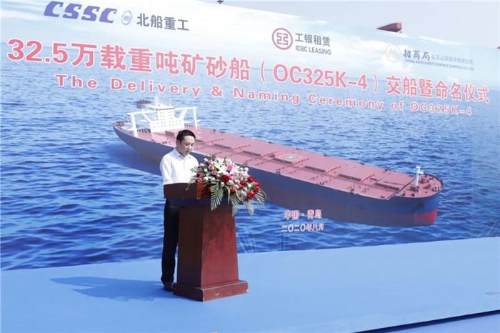 上午9:00,武船集團北船重工為工銀租賃和招商輪船建造的第四艘32.5萬噸礦砂船“ORE CHONGQING”輪命名暨交船儀式在3號碼頭舉行,這是各方在黨中央的正確領(lǐng)導(dǎo)下,抗擊疫情取得的重要成果。工銀租賃航運金融事業(yè)部副主管賈浩、北船重工總經(jīng)理谷克超代表雙方簽署了交船議定書。