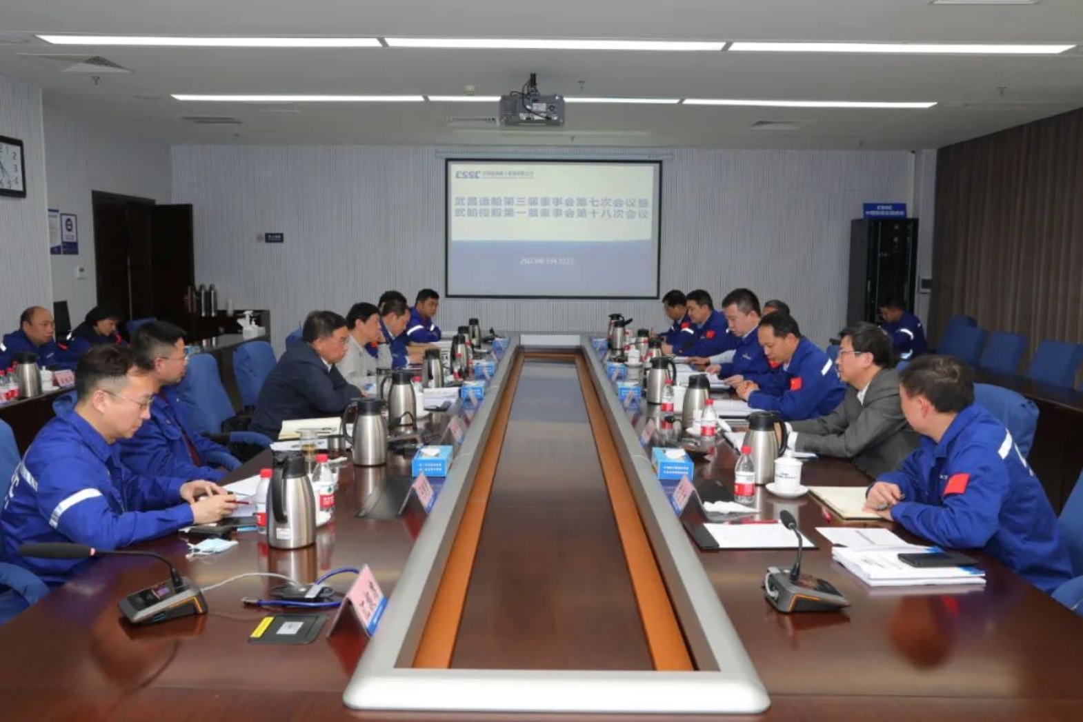 3月31日下午,中國船舶集團武昌造船第三屆董事會第七次會議、武船控股第一屆董事會第十八次會議順利召開。會議由董事長姜濤主持,武昌造船董事肖石、張世平、梁師清、胡宏杰,武船控股董事梁師清、陳仲明、龍瓊子分別出席了會議,武昌造船、武船控股監事會主席何有斌,武昌造船監事董曉冬、劉仁武、羅賢,公司領導田軍、唐瀅,以及公司有關部門負責人分別列席了會議。