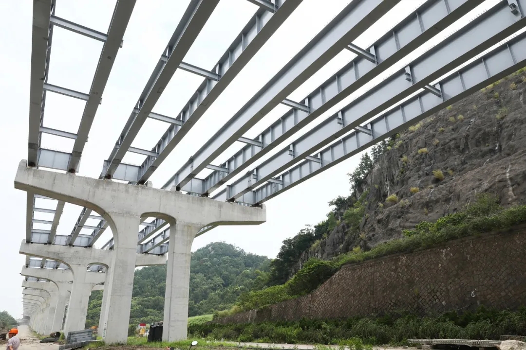 路澤太高架TJ03標(biāo)全長(zhǎng)約7.99公里,主線高架橋雙向六車道,橋梁寬度26米,設(shè)計(jì)速度80公里/小時(shí)。標(biāo)段共包括5萬(wàn)噸鋼板梁架設(shè)任務(wù),共計(jì)1808片鋼板梁,其中最大聯(lián)次長(zhǎng)達(dá)225米,全部由武船重工股份承制。鋼板梁在武船集團(tuán)舟山增洲基地制造完成后,從舟山通過(guò)船運(yùn)至龍門港碼頭,再通過(guò)運(yùn)梁車運(yùn)輸至項(xiàng)目現(xiàn)場(chǎng)進(jìn)行架設(shè)。