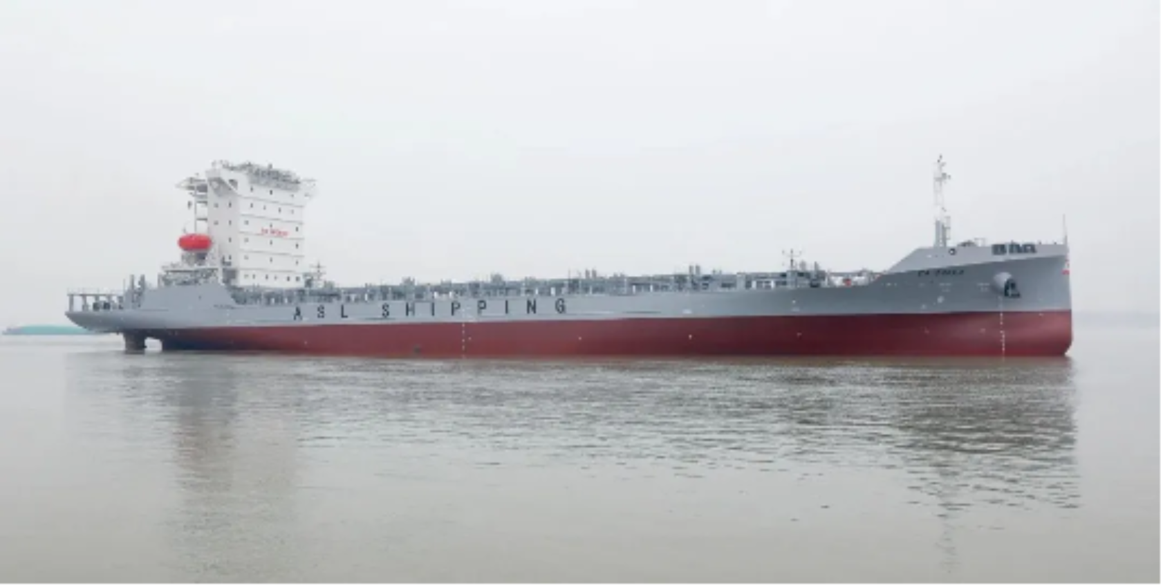 3月16日上午9點18分,由中國船舶集團武昌造船建造的1100TEU集裝箱船2號船順利離廠,正向著交付目標全力沖刺!