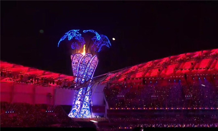 開幕式上最激動人心、最富有創(chuàng)意的地方就是最后點燃火炬的那一刻,七條火龍(飄帶)盤旋而上最終點燃圣火,世人為之驚嘆。