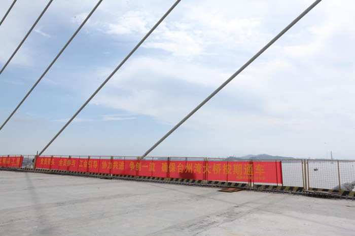 臺州灣大橋主橋為主跨488米的雙塔雙索面疊合梁斜拉橋,全長948米,是臺州沿海高速公路的控制性工程,它的順利合龍,標(biāo)志著大橋主體工程建設(shè)已進(jìn)入收官階段。