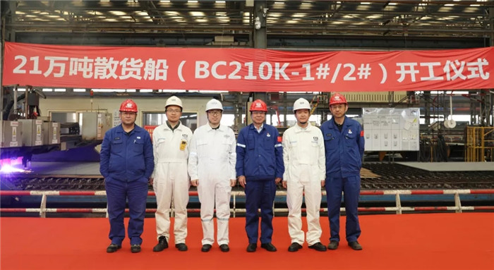 11月15日上午10時18分,由武船集團北船重工承接建造的中遠海運散貨運輸有限公司21萬噸散貨船首制船(BC210K-1#/2#)順利開工。這標志著此項目由前期生產(chǎn)技術(shù)準備工作轉(zhuǎn)入生產(chǎn)建造階段。