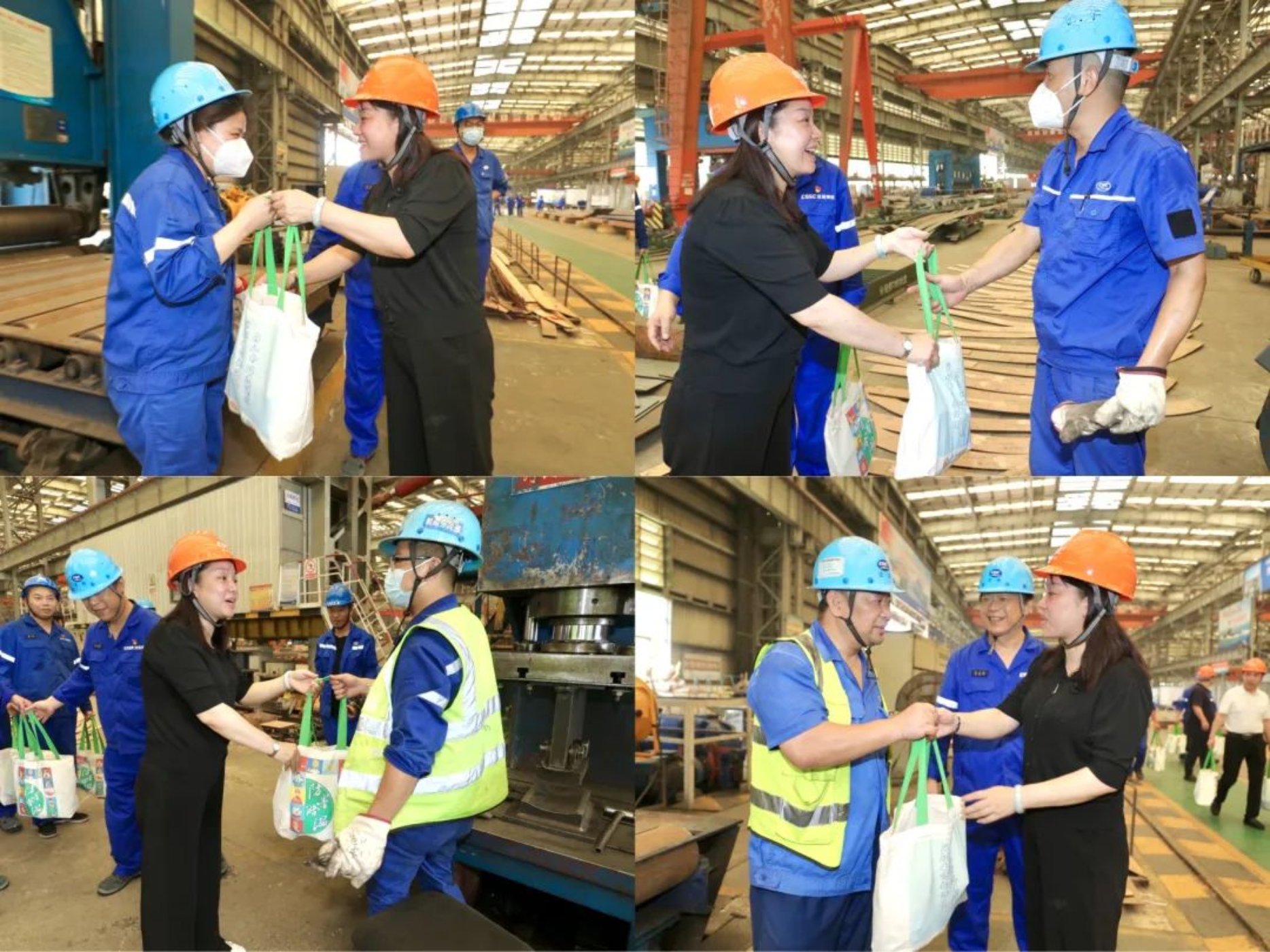 7 月 28 日上午,武漢市總工會國防科研工會主席徐艷等一行,到中國船舶集團武昌造船施工現場開展“工會送清涼,防暑保健康”活動,親切慰問公司一線員工。