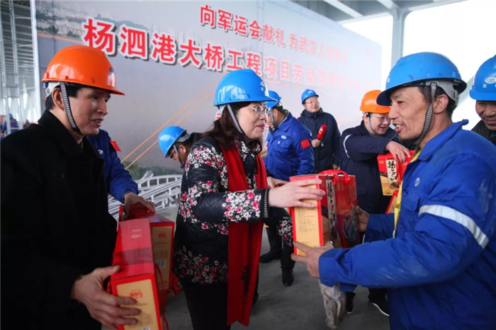 楊少稀在勞動競賽動員時指出,楊泗港大橋是軍運會重點工程,項目全體參建人員要以本次專項勞動競賽活動為契機,周密策劃,科學組織,全力沖刺,按照打造標準化、規范化、精細化的品質工程進行施工和管理,確保項目按競賽方案要求節點完成夯實工作基礎;要腳踏實地把關乎百年大計的工程做好,為武漢軍運會和城市建設貢獻武船力量,向武漢人民交一份滿意的答卷。