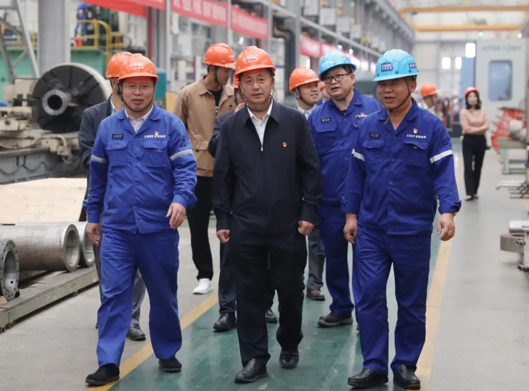 陳紅山一行首先來到了武昌造船雙柳廠區偉人廣場瞻仰毛主席銅像,隨后深入車間一線,參觀了武昌造船機電公司輕型加工車間生產現場、黨建活動陣地和勞模工作室。