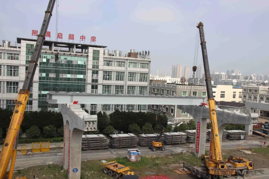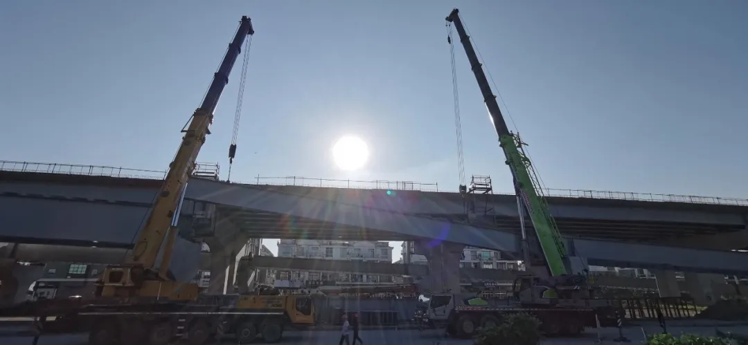 ▲最后一片鋼板梁正在吊裝