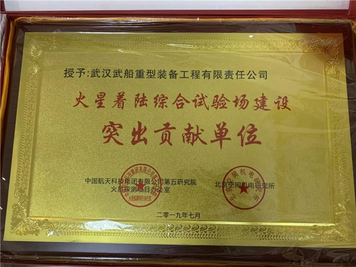 ▲武船集團重裝公司榮獲“火星著陸綜合試驗場建設突出貢獻單位”