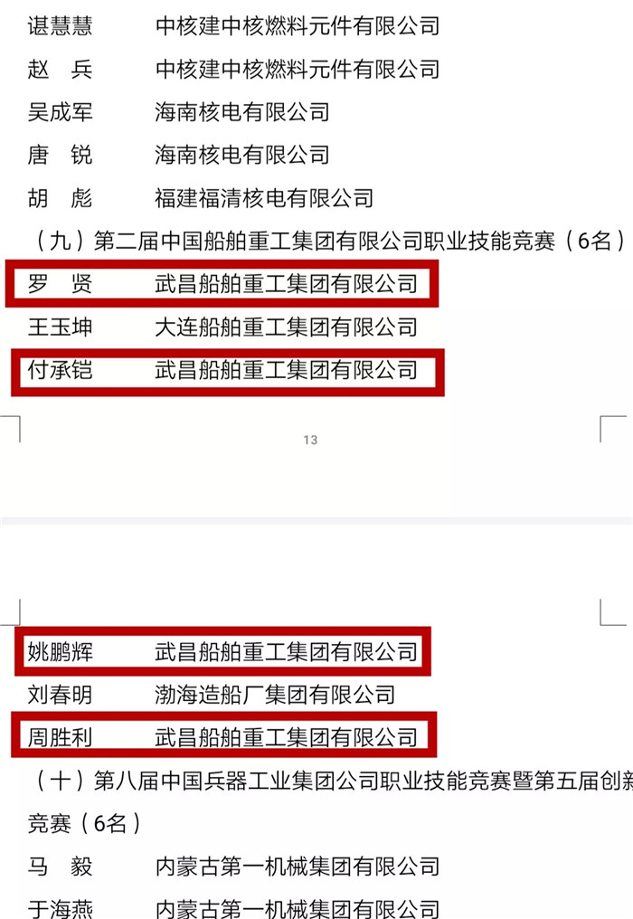 2018中國(guó)技能大賽?C?C第二屆“船舶杯”中船重工職業(yè)技能競(jìng)賽過(guò)程中,武船集團(tuán)下屬單位模塊公司姚鵬輝、軍船公司羅賢、北船重工周勝利、船舶公司付承鎧等參賽選手認(rèn)真?zhèn)淇紤?yīng)考,按照比賽規(guī)則出色完成了全部比賽科目,從中船重工16支代表隊(duì)的81名選手中脫穎而出,姚鵬輝和羅賢分別斬獲船體裝配工和船舶電焊工比賽第一名,周勝利、付承鎧分別獲得船體裝配工和船舶電焊工比賽第三名,展現(xiàn)了高超的船舶建造技藝。按照《中華技能大獎(jiǎng)和全國(guó)技術(shù)能手評(píng)選表彰管理辦法》和《人力資源和社會(huì)保障部關(guān)于組織開(kāi)展2018年中國(guó)技能大賽的通知》要求,在2018中國(guó)技能大賽?C?C第二屆“船舶杯”中船重工職業(yè)技能競(jìng)賽(國(guó)家級(jí)二類(lèi)競(jìng)賽)決賽中獲得前3名成績(jī)的武船職工姚鵬輝、羅賢、周勝利、付承鎧被人社部授予“全國(guó)技術(shù)能手”榮譽(yù)稱(chēng)號(hào)。