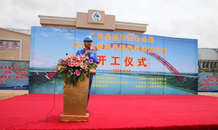 7月18日上午,平南三橋鋼結構工程在武船南方基地點火開工,這標志著世界上最大跨徑的拱橋已正式進入建造階段,廣西荔浦至玉林高速公路有限公司、廣西路橋工程集團公司、廣西桂通工程咨詢公司等單位相關領導,武船重工股份總經理吳躍波,副總經理吳濤,總經理助理杜民出席開工儀式,武船重工股份項目部成員及員工代表30余人參加開工儀式。