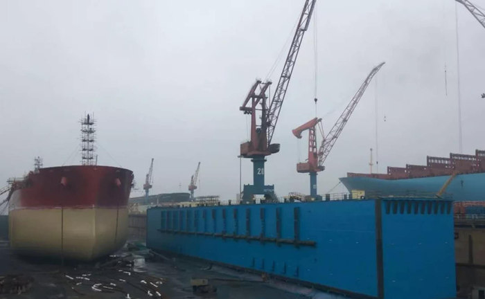 5月15日,武船集團(tuán)北船重工承制的馬士基E系列埃斯特爾集裝箱改裝項(xiàng)目在北船重工青島武船大塢完成塢內(nèi)改裝任務(wù)并順利出塢,該船為北船重工修船分廠承接馬士基系列改裝及常規(guī)塢修的第106艘船舶,也是新北船統(tǒng)籌利用大塢資源以來(lái),在青島武船進(jìn)行塢內(nèi)施工的第5艘大型船舶。