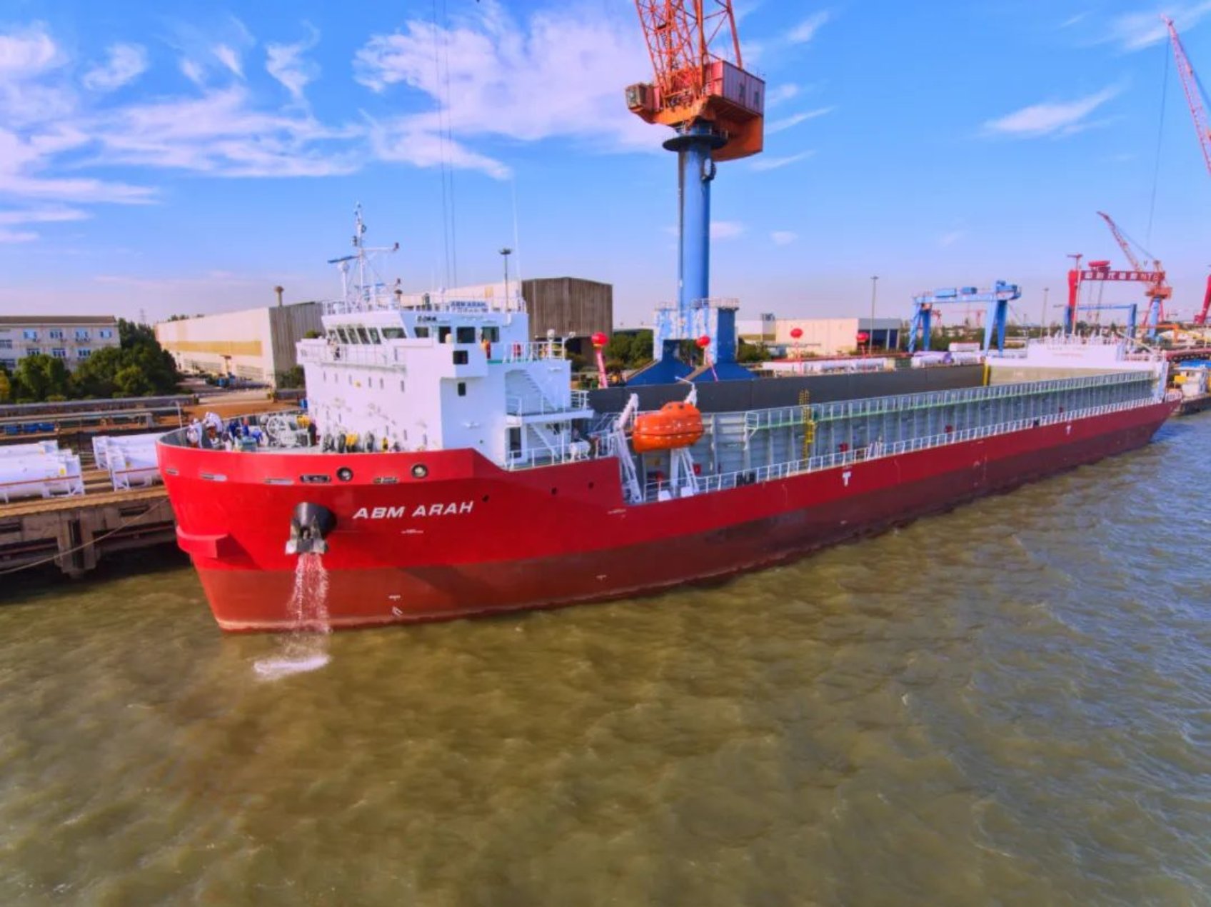2022年10月20日由中國船舶武船為印尼PT ABM公司建造的13300噸甲板運輸船3號船在中船澄西(泰州)出口碼頭順利交付。13300噸甲板運輸船3號船作為武船為該船東設(shè)計、建造的第11條船,也是第三代系列船的收官之作。