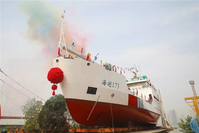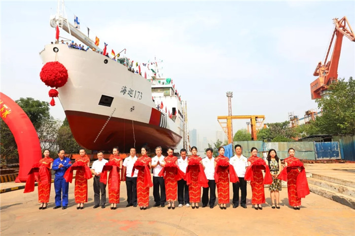 9月26日上午9點58分,由武船集團船舶公司為廣東海事局建造的2000噸大型航標船在武昌總部順利下水,廣東海事局局長陳畢伍、南海航海保障中心書記肖明、廣東海事局基建裝備處處長李思強、廣州航標處處長李忠、中船工業第七?八研究所主任助理于再紅、中國船級社武漢分社副總經理杜海根、武船集團總經理梁師清為廣東海事局大型航標船“海巡173”輪下水剪彩,廣東海事局局長陳畢伍行擲瓶禮。
