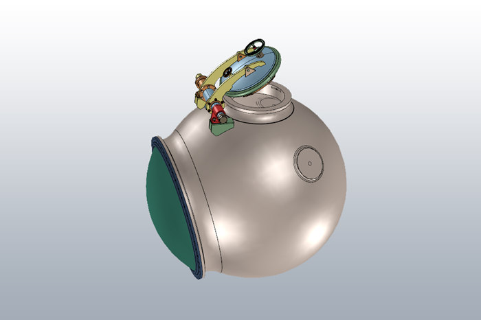 模塊公司承制的載人艙為潛航乘員及艙內設備提供常壓環境,是大壩深水檢測載人潛水器關鍵耐壓結構和核心部件,由金屬球殼殼體、觀察窗、出入艙口圍欄、氣路穿艙件安裝座、壓環和出入艙口蓋、電氣接插件等零部件構成。構成載人艙的所有零部件須要承受最大300米水深壓力,載人艙外形尺寸和質量配比精確度要求苛刻,以滿足載人艙作業深度和較大安全浮力要求,其整體施工建造難度很大。