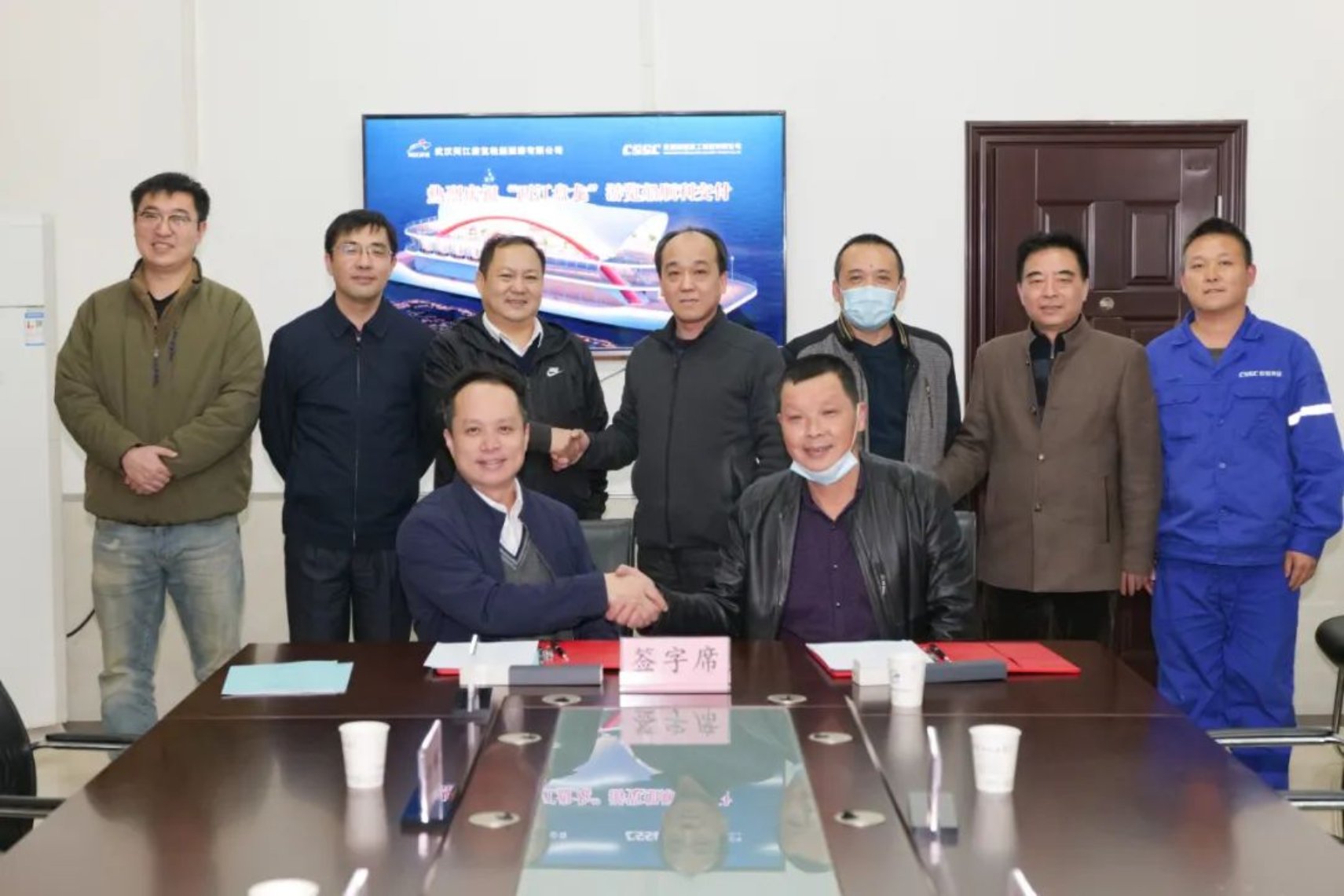 11月28日,中國船舶武船為武漢兩江游覽輪船旅游有限公司建造的750客位雙體游覽船“兩江盤龍”輪,順利簽字交付。