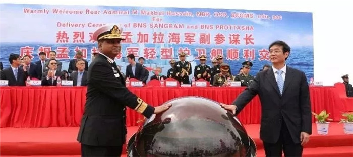 2019年4月3日,中船重工武船集團(tuán)為孟加拉國海軍建造的兩艘輕型護(hù)衛(wèi)艦順利交付。該項目是中孟兩國重大軍事裝備合作項目,該型兩艦的成功交付,對兩國友好關(guān)系發(fā)展和兩軍交流合作、以及進(jìn)一步深化各領(lǐng)域合作具有重大意義。
