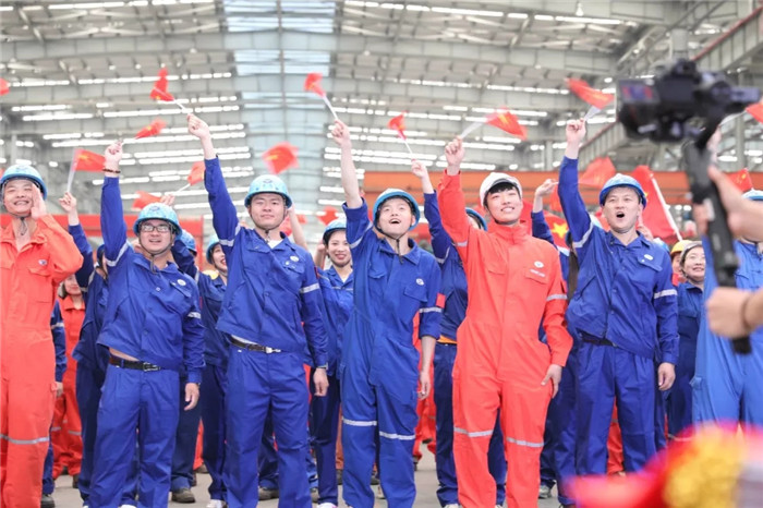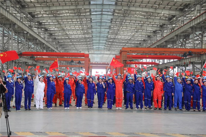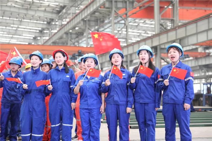 ▲武船集團(tuán)歌頌祖國快閃活動《我和我的祖國》