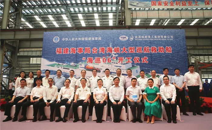 2019年5月23日上午,福建海事局臺灣海峽大型巡航救助船“海巡06”在武船集團(tuán)雙柳基地順利開工。該船承載著保障國家重大發(fā)展戰(zhàn)略、服務(wù)臺灣海峽兩岸交流交往、提升海事履職能力的重要使命。建成后,主要用于臺灣海峽海事監(jiān)管、海上救生、船舶救助、海上船舶溢油監(jiān)測及海上應(yīng)急處理,對維護(hù)國家海洋權(quán)益、開展國際交流合作具有重要意義。