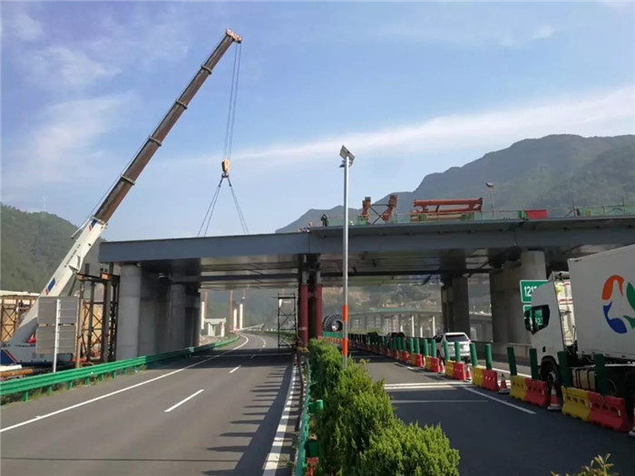 2019年6月22日,由武船重裝公司承建的濟(jì)祁高速三覺互通連接線新橋大橋單跨鋼箱拱合攏。