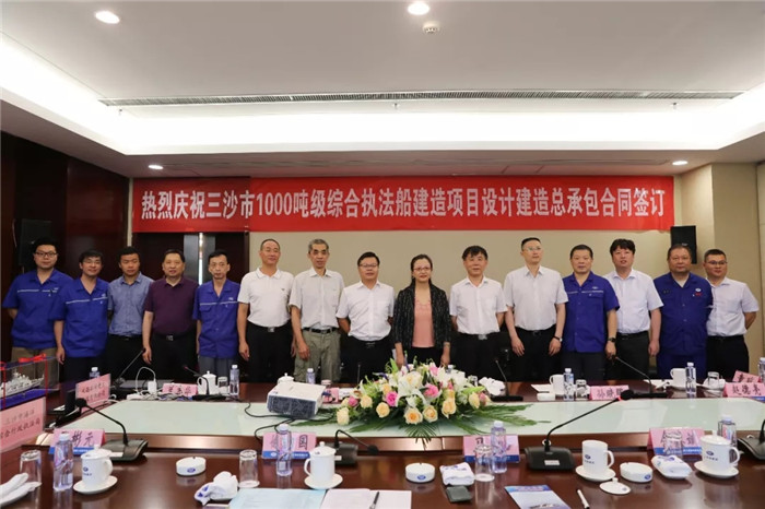 2019年6月21日,武船集團(tuán)與三沙市海洋綜合行政執(zhí)法局在武船雙柳基地簽訂1000噸級綜合執(zhí)法船建造合同。該船建成后,將執(zhí)行三沙市管轄海域內(nèi)巡邏、監(jiān)管等重要任務(wù),擔(dān)負(fù)起維護(hù)國家海洋權(quán)益的重大使命。