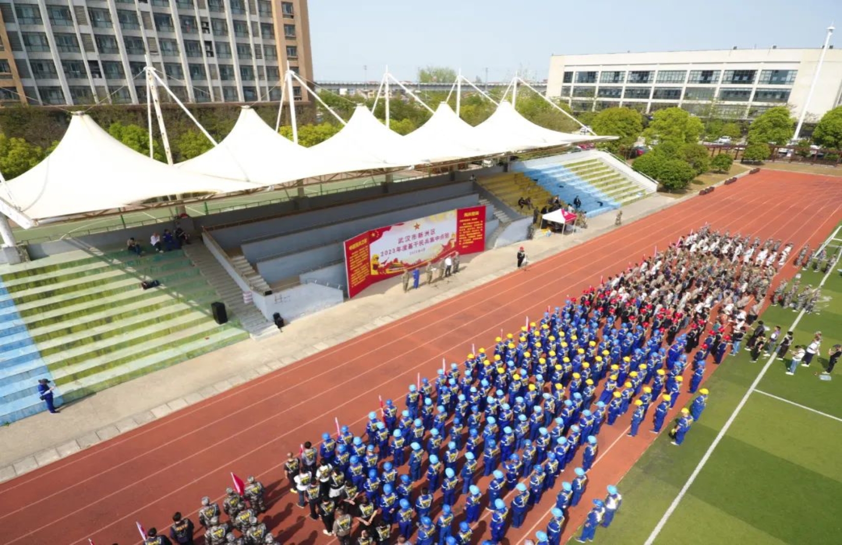 4月10日,風(fēng)和日麗,軍旗飄揚,武漢市新洲區(qū)基干民兵點驗大會在中國船舶集團武昌造船體育場隆重舉行。新洲區(qū)委常委、區(qū)人武部政委陳勇、區(qū)人武部部長馮俊明、區(qū)人民政府辦黨組成員高擁軍、相關(guān)街鎮(zhèn)及高校武裝部長、武昌造船安保部有關(guān)負責(zé)人出席本次點驗大會。同時參加點驗大會的還有雙柳片區(qū)基干民兵 670名,其中武昌造船基干民兵 200 名。