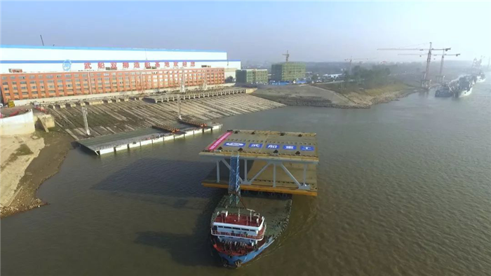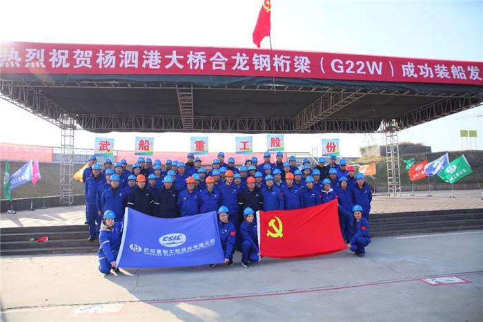 12月18日,世界最大跨度的雙層公路懸索橋?C?C楊泗港大橋合龍鋼桁梁在公司雙柳廠區(qū)裝船發(fā)運,這標(biāo)志著由武船重工股份承建的楊泗港大橋全橋51節(jié)鋼桁梁節(jié)段已全部發(fā)運完畢。合龍鋼桁梁發(fā)運儀式在船臺舉行,武船重工股份總經(jīng)理吳躍波,中船重工集團首席技術(shù)專家、武船重工股份總工程師阮家順,副總經(jīng)理、工會主席姜海松,武船集團群團工作部、規(guī)劃部、雙柳武船、運輸單位和公司參建代表共計60余人參加儀式。