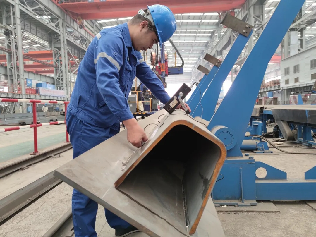 U肋焊縫是鋼橋梁中的關鍵承力焊縫,質量要求非常高,一座橋梁的U肋焊縫長度以數萬米計。經反復試驗和檢測,武船重工股份在該項技術上取得突破,實現了免清根熔透焊,超聲波檢測一次合格率超過99%,焊接效率為常規工藝的3倍以上。