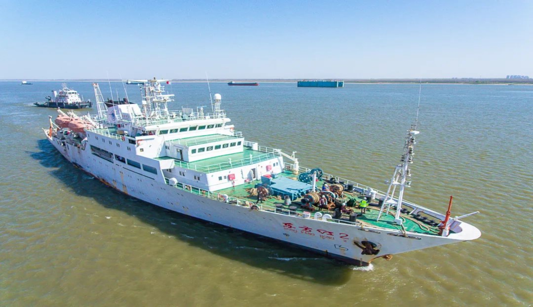 “東方紅2”船總噸位3235噸,總長96米,型寬15米,設計吃水5米,結構吃水5.5米,最高航速18節(jié),經(jīng)濟航速10節(jié),采用雙主機單可調(diào)螺距螺旋槳實現(xiàn)0.5-18節(jié)無極調(diào)速,續(xù)航力13000海里,自給力60晝夜,南、北緯60°以內(nèi)無限航區(qū),全船有92個居室,核定定員為196人,是我國載員人數(shù)最多的海洋科考船,全船共有干性實驗室、濕性實驗室、通用實驗室、專業(yè)實驗室共計15個。配備了系列國際先進的海洋調(diào)查儀器設備,形成了涵蓋物理海洋、海洋氣象、海洋化學、海洋生物、海洋地質(zhì)等學科較為完善的儀器設備體系。